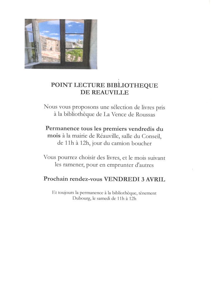 3 avril – Permanence en mairie pour le point lecture bibliothèque