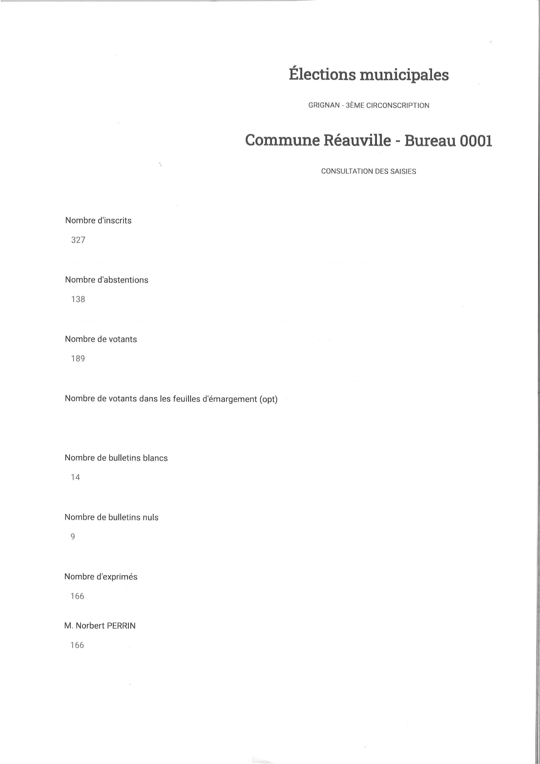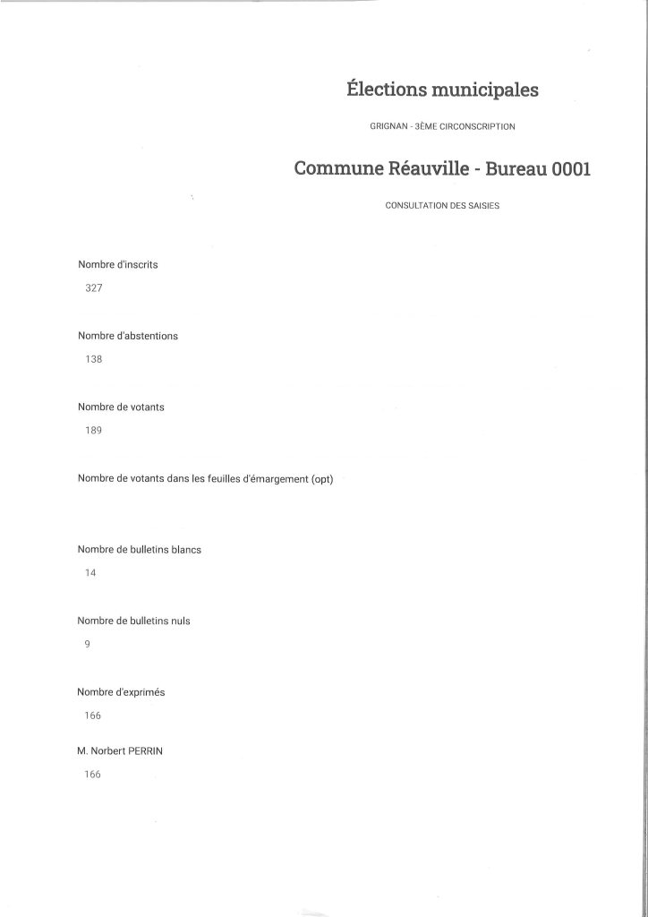 La liste “Bien vivre à Réauville” est élue au 1er tour de scrutin.