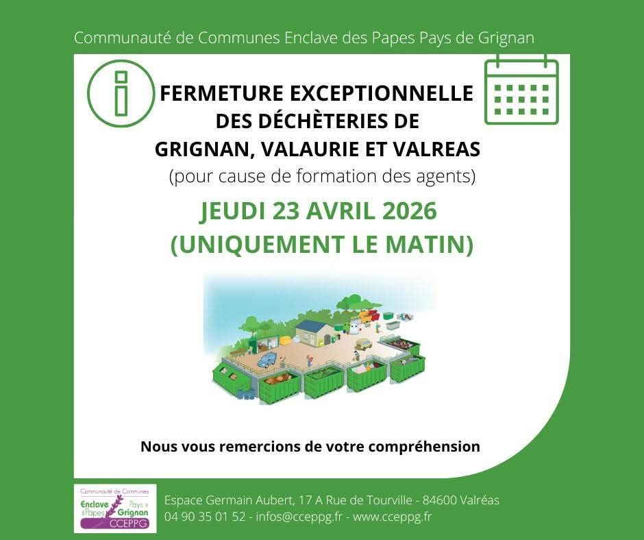 La communauté de communes Enclave des Papes Pays de Grignan (CCEPPG) a la compétence gestion des déchets.