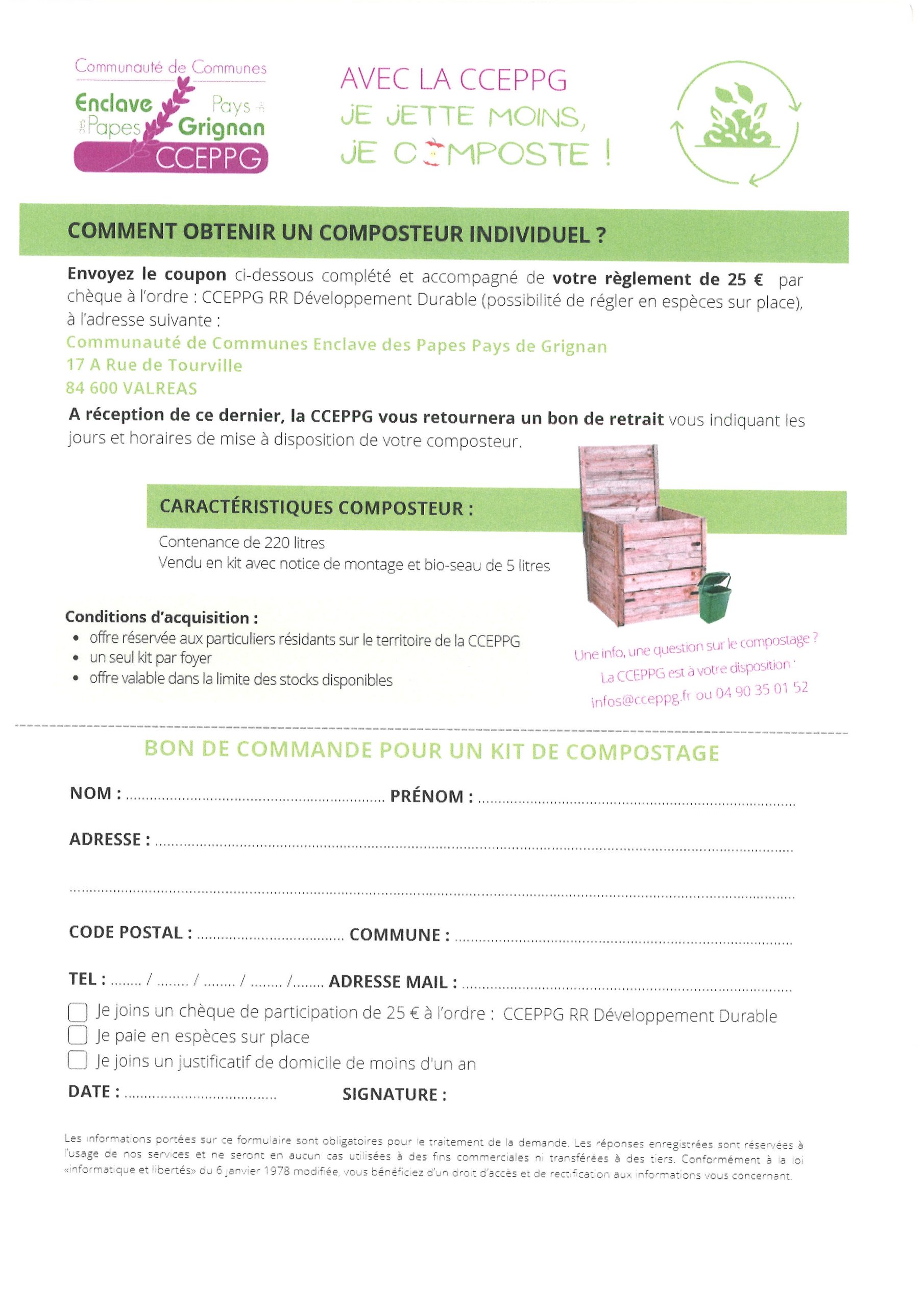 Vente promotionnelle de composteurs individuels